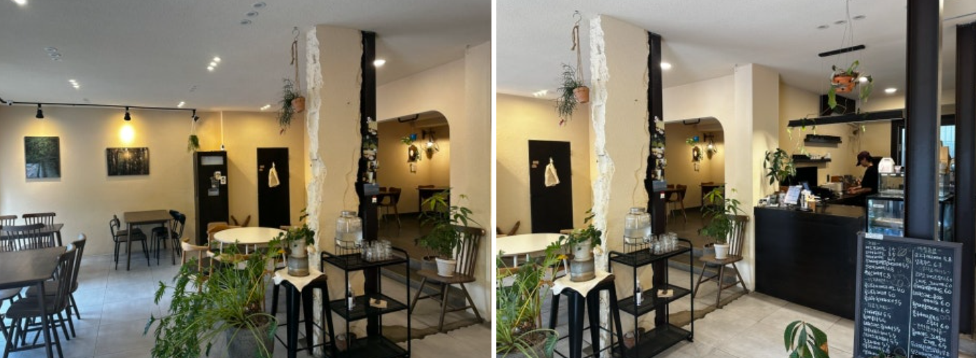 문을 열자마자 빈티지한 인테리어와 식물 가득한 포근한 공간이 반겨줍니다.